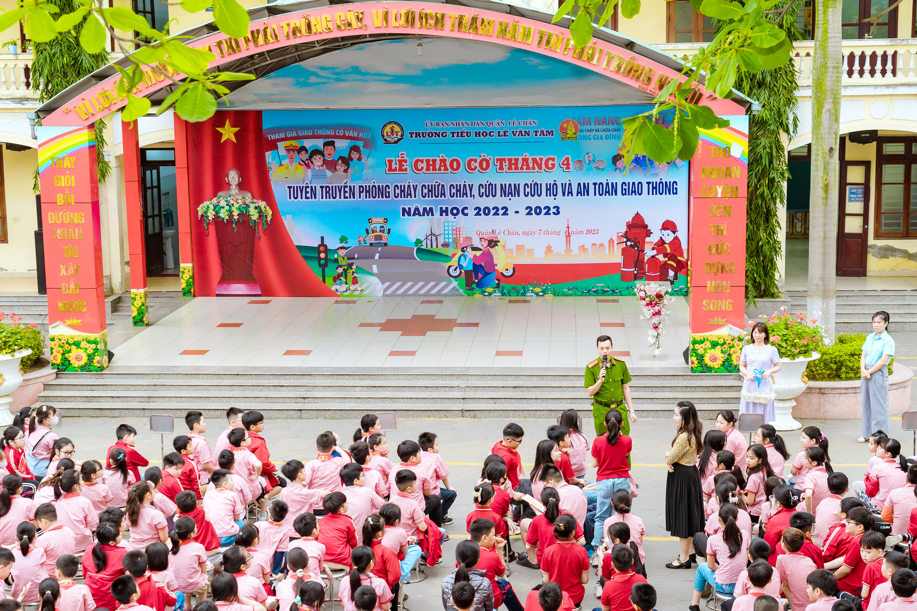 Đồng thời, Nhà trường phối hợp với Đội giao thông và phòng cháy chữa cháy cứu nạn cứu hộ - Công an quận Lê Chân tổ chức tuyên truyền, phổ biến những kiến thức về luật giao thông, phòng cháy chữa cháy.