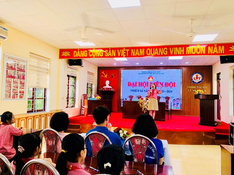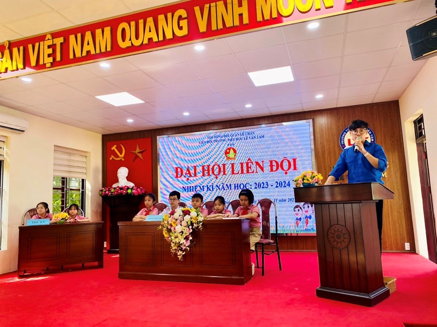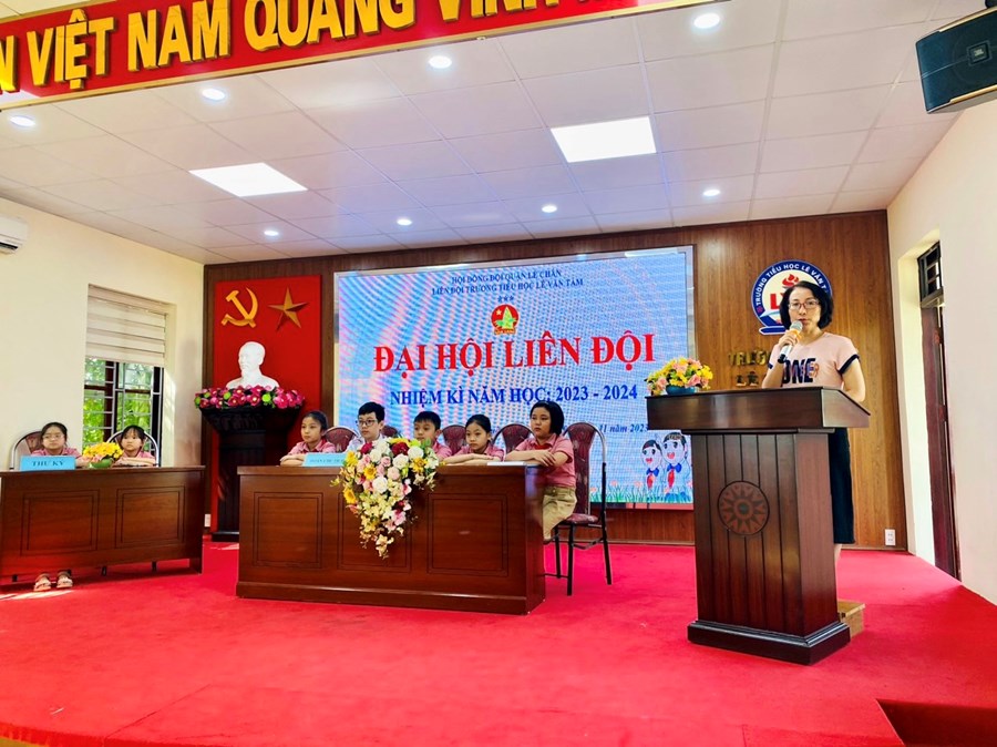 Sáng ngày 01/11/2023, Liên đội trường Tiểu học Lê Văn Tám long trọng tổ chức Đại hội Liên đội nhiệm kỳ 2023 – 2024. Đại hội vinh dự được chào đón các quý vị đại biểu: Anh Ngô Minh Quang - Bí thư Đoàn phường Trại Cau; Cô giáo Trần Thị Thanh Vân - Phó Hiệu trưởng nhà trường; Cô giáo: Phạm Thị Hà Mi - Bí thư Chi đoàn giáo viên; Cô giáo Nguyễn Thị Loan - Giáo viên Tổng phụ trách Đội; Cùng các thầy cô giáo trong chi đoàn giáo viên và 60 đội viên trong Ban chỉ huy các Chi đội.