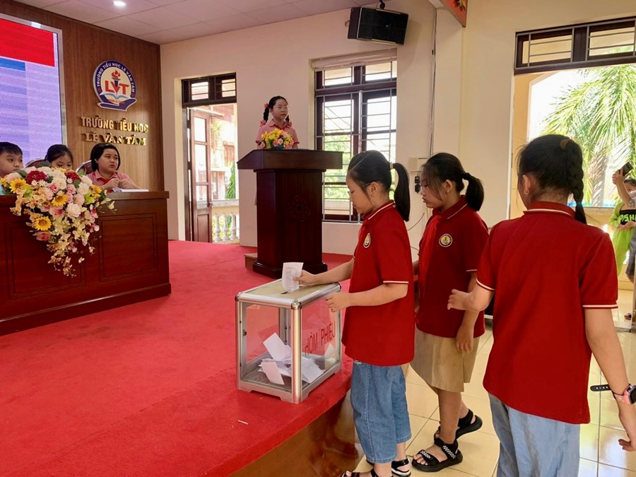 Sau một thời gian làm việc rất nghiêm túc, Đại hội đã bầu ra 15 bạn đội viên ưu tú vào Ban Chỉ huy Liên đội nhiệm kỳ mới 2023-2024 (Bùi Lê Hoàng Yến- 5A;Phạm Hoàng Bảo Anh - 5A3; Nguyễn Thị Phương Uyên; Vũ Bảo Trâm - 5A4; LưuTôn Thế Bảo - 5A5; Nguyễn Đinh Hương; Nguyễn Hương Giang; Bùi Nguyễn Thảo Vy-5A6; Nguyễn Thị Minh Phương; Vũ Hải Anh - 4A; Nguyễn Bích Ngọc - 4A2; Phạm Minh Anh - 4A4; Lê Vũ Hải Thành; Nguyễn Vũ Thảo Mi - 4A5; Nguyễn Thùy Linh - 4A6).