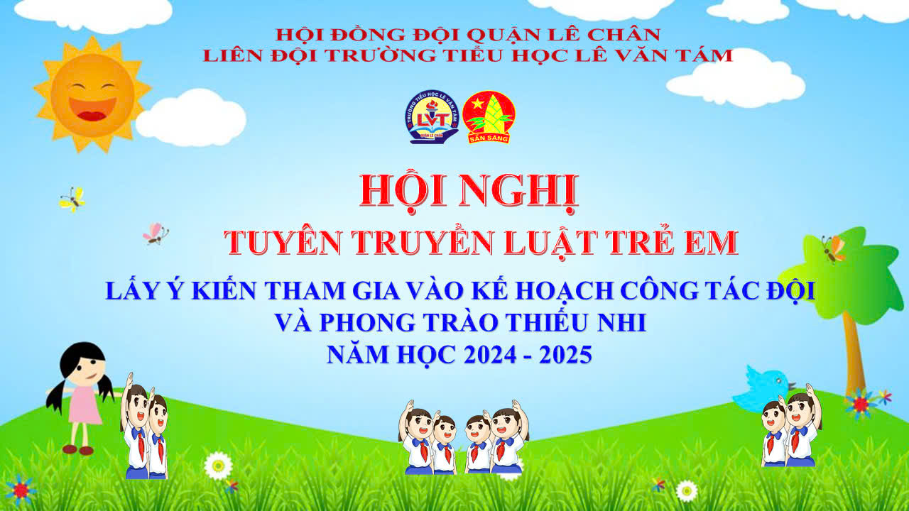 Sáng ngày 18/10/2024, trường TH Lê Văn Tám tổ chức buổi tuyên truyền giáo dục Quyền trẻ em, lấy ý kiến của 64 em đội viên ưu tú tham gia vào kế hoạch công tác đội và phong trào thiếu nhi năm học 2024 - 2025.