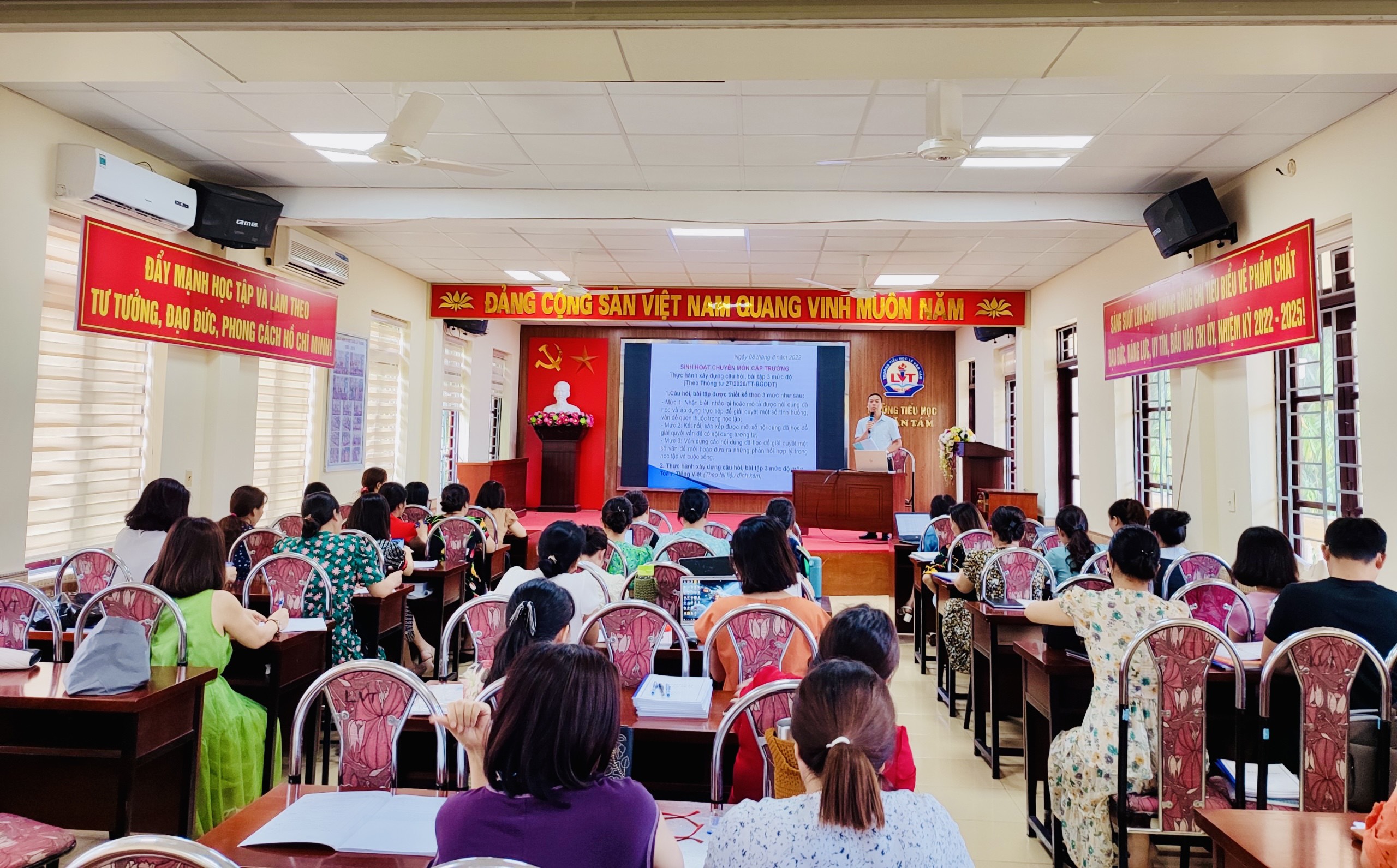 Đội ngũ giáo viên nhà trường đã rất tâm huyết với những vấn đề đưa ra, dày công nghiên cứu, thảo luận vô cùng sôi nổi. Qua các nội dung bổ ích và thiết thực đó, mỗi giáo viên của trường đã có thêm nhiều kinh nghiệm để triển khai dạy học theo hướng đổi mới ở năm học 2022 – 2023./.