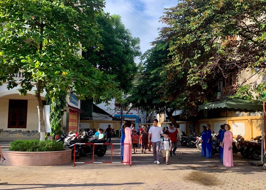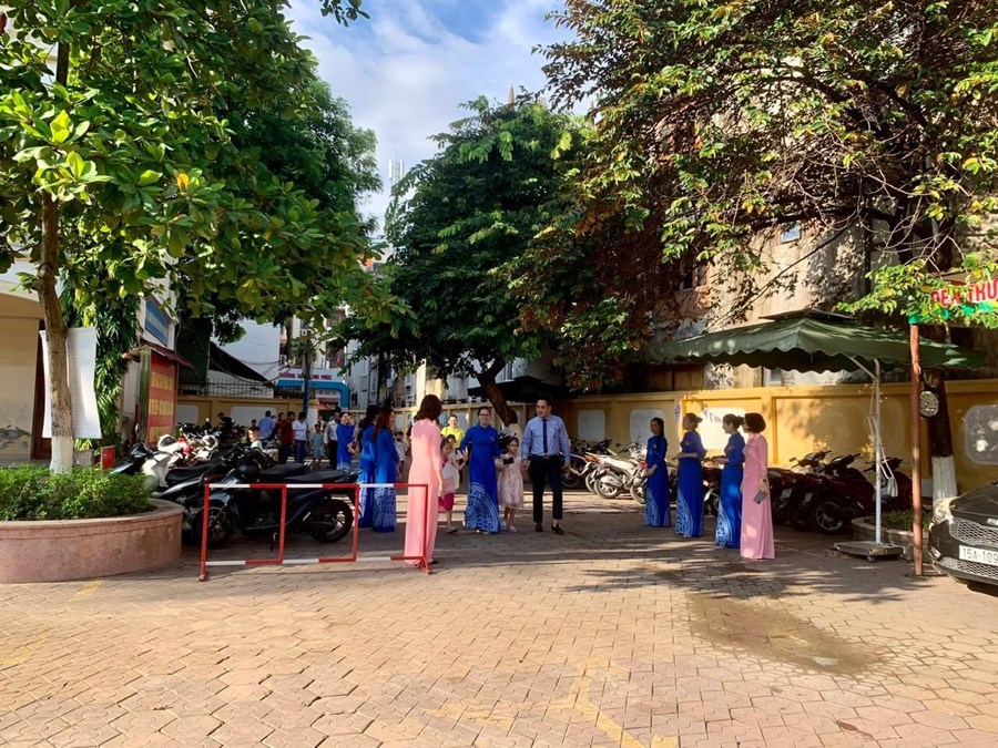 🌷 Không khí buổi tựu trường thật hân hoan, dưới bản nhạc hay được phát vang khắp trường, các bậc cha, mẹ vô cùng phấn khởi, vui mừng, ngay từ khi tới trường, âu yếm dắt tay con vào lớp, gửi gắm các thầy cô.