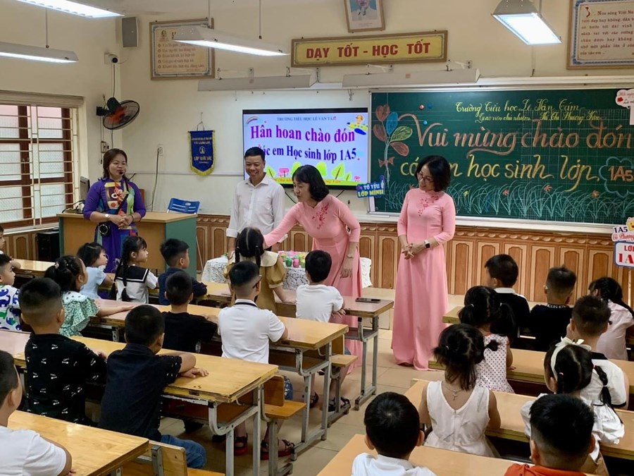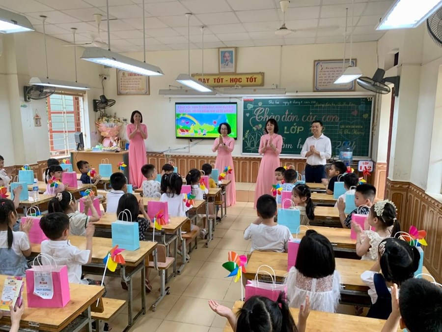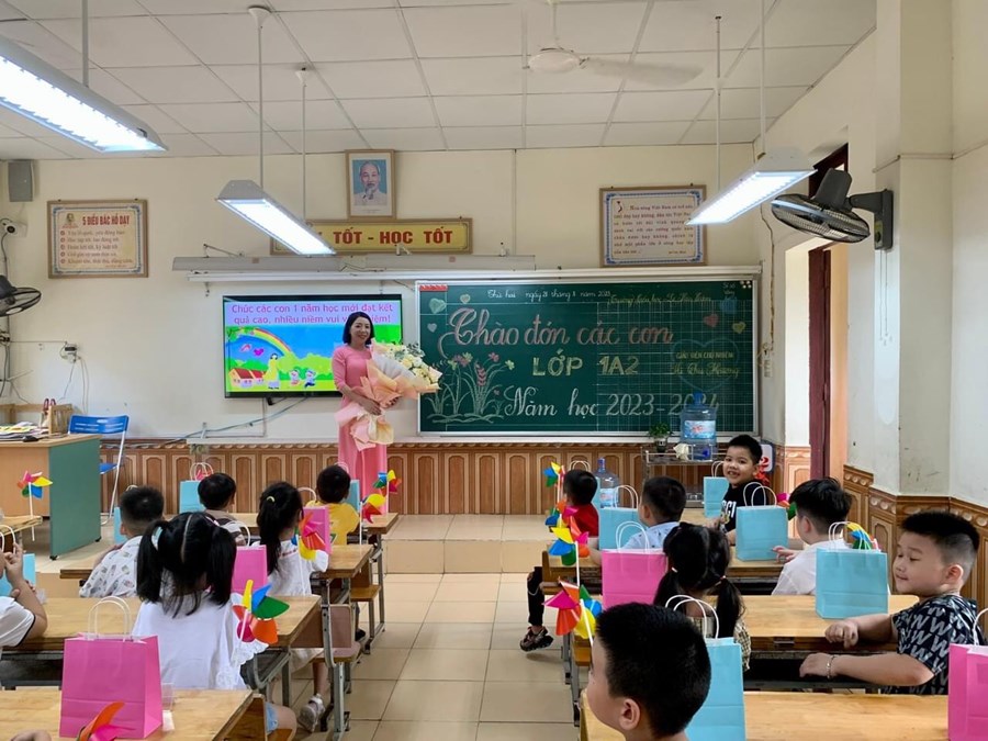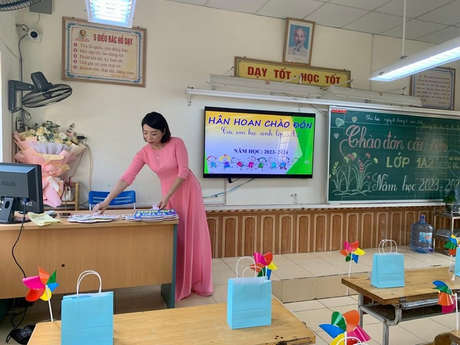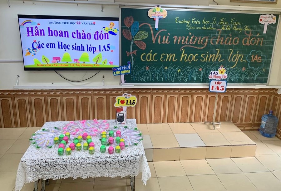 Các cô giáo chủ nhiệm đã chuẩn bị rất chu đáo, sẵn sàng để chào đón các em. Lớp học, sân khấu được trang trí đẹp mắt, thân thiện, đầy màu sắc. Các em tới trường tỏ rõ niềm vui, niềm hứng khởi khi đón nhận những điều tuyệt vời đó.